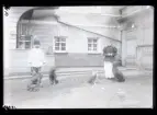 "Människor och djurbilder från Ryssland. Nikifer och Xenia med hundarna på gården"