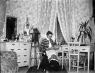 Uppgift enligt fotografen: "Uddevalla. Interiör fru Toni Wikborgs hem Ådalsgatan 4."