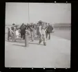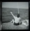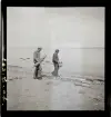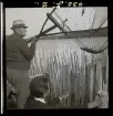 Text på montering i arkivet: Bottengarnen halas av laget från båten upp på bonden Ingels vagn och köras till torkplatsen vid Åkroken.