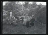 Publik vid musik/dansarrangemang på scenen vid Gunnebo slott.
