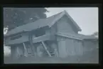Takkonstruktion till uthus - nu på friluftsmuseet Disagården - under nedmontering i Gränby, Björklinge socken, Uppland