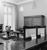 Avdelning för maskinella hjälp-medel i posttjänsten (frankostämp-lingsmaskiner) på nedre botten. Väggmålning av Anders Beckman.
