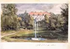 "Råbäck 14 aug 1864". Fontän framför huset. Akvarell av Fritz von Dardel.