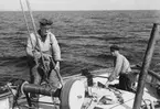 Fångsten bärgas. Arne Albertsson vid "lännet".