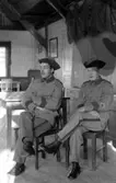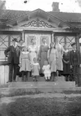 En man klädd i kostym står bredvid en dörr och en krukväxt,troligen en nerium