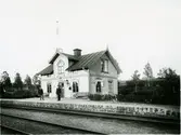 Eldsberga järnvägsstation efter ombyggnaden. Mannen på bilden är troligen stationsförståndare Reinhold Lindberg.