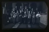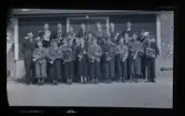 I trädgården hos fotograf Emil Durling har ett musikaliskt sällskap samlats. Stående näst längst till vänster är Ester Karlsson - mer känd som Ester Bölja Bergström efter ett taget tillnamn och giftermål. Anm: Identiteten av de övriga personerna har ej kunnat styrkas.