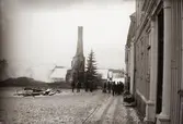 Bangården vid Gamleby station under branden den 18 juni 1920.