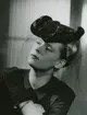 "Rose Valois". Modell, möjligen Hjördis Grundel-Starenius, i hatt med klockat brätte, rosett, flor.