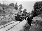 Edet. Fr.v: 1. 2. Fritiof Karlsson, Närlunda, lokförare 3. David Karlsson, Myrhult, eldare 4. Rickard Nilsson, Edet, förman 5. Gustaf Pettersson 6. Verner Karlsson, Tjärbruket 7. Frans Svensson ("Bussa-Frans") 8. Oskar Borg, Skagen