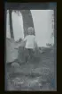 "Olle Vahlström" En pojke porträtterad vid en stor sten ute i naturen.