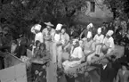 Byggmästaren Anders Diös tillsammans med folkdräktsklädda barn i samband med Barnens Dags-firandet i Uppsala i maj 1937