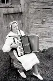 Skara. Midsommardans i Fornbyn 1951. Spelman Margit Green.
