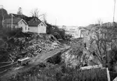 Dotorpsgatan, taget från Humlegården norrut. Folkskolan längst till vänster Verdandilokalen på öppna fältet. Längre bort Österbergs lada.