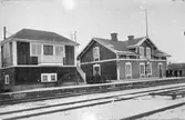 Banvaktsstuga och lastkaj. Stationen byggd 1877. 1910 byggdes nuvarande ställverk. Bangården utbyggdes 1941 . SWB , Stockholm - Västerås - Bergslagens Järnväg