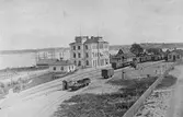 I förgrunden spåret på sträckan mellan Jenny och Verkebäck. I bakgrunden lastade vedvagnar vid Verkebäck hamn.