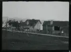 Vy över hamnplan, Narvik. Båtar ligger på redden, parkerade bilar och människor i rörelse. I bakgrunden fjäll.
