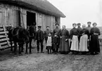 Mellanskogen - f. d. soldaten A. G. Hjalmars ställe på Segerstadsfalan 1921. I porten står korpral Hjalmar. Låg å Wahlsteds teg på falan.