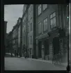 585/40 Facit Nattbild från N.K + Södra Kungstornet. Kvällsbild. Facit-skylt på taket av fastigheten Styrpinnen 22, ritad av arkitekt Ivar Tengbom i hörnet Hamngatan / Kungsträdgårdsgatan i Stockholm.