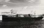 Foto i svartvitt visande lastmotorfartyget "PANAMA" i Köpenhamn under år 1954.