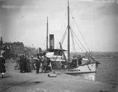 MÅNGA PERSONER SAMLADE INTILL EN PASSAGERARBÅT VID EN SLUSS SANNOLIKT I SAMBAND MED KANALJUBILEET 1922