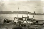 Text på kortet: "Ång. Albrektsund under reparation. Motorfartyget Algo förses med 130 HK Avancemotor".