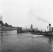 Ubåten Sälen (sjösatt 1955) som ligger förtöjd längs minsveparen HMS Sandön (sjösatt 1940)