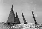 Besättningen på 6-L21 KLARA STJÄRNA under Sandhamnsregattan 1938. Fr v t h Georg "Malajen" Sohlberg, Rolf Gullichsen och Harald "Flaxen" Zetterström" (namnuppgifterna från Liewendahl m.fl.: Sexornas Jakt, Helsingfors 1992, s 96).