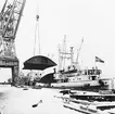 Lyft av akterstäv från verkstadskajen M/s Garm