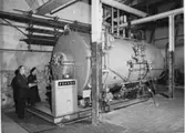 Givarens far Helmer Garthman, står vid en svarv på sin arbetsplats vid API (AB Pumpindustri). Krokslätt, 1950-tal.