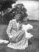 Möklinta sn, Sala. Hedbron. "Hebrons backe", c:a 1910. Äldre kvinna framör staket.