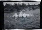 Flatenbadet. Badande barn och ungdomar.