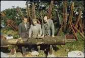 Konservatorer arbetar på konserveringsanläggningen på Beckholmen, med en sjömanskista som hittades ombord på Vasa. I mitten med pipa, arkeolog Per Lundström.