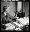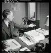 Luftskyddsövning vid Nordiska museet den 10 mars 1944. Laura Stridsberg är ordningsvakt i skyddsrummet där en grupp anställda män och kvinnor samlats.