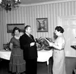 Ny Mercedes, 21 januari 1966 På bilden syns Sveriges bl.a. USA:s och Tysklands flaggor, samt namnet "Ford" på en skylt. En man håller tal inför publik.