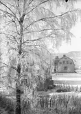 Flicka och pojke vid en björk i trädgården, Östhammar, Uppland