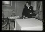 513 E Redaktör Runar Karlströmer hem från Danmark. Ett sällskap har just ätit middag vid ett dukat bord.