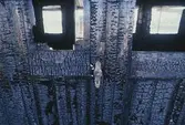 Eldhärjad del av lanternin i ekonomiavdelning av SJ Ro2 2702. Mestadels sotskador.
