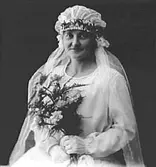 Enligt fotografens noteringar: "Omkring år 1912? Brudpar Bjelke. Bruden Astrid. Bröllop i Kvistrum."