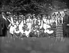 "Folkdanslaget". Bazar? Till höger kan texten "Ernst Mattssons Skoaffär" (Enköping) utläsas.
