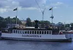 Ångfärjan DJURGÅRDEN 4 utanför Kastellholmen, Stockholm. Kvällsbild, vykort.