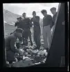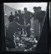 En stapel med konservburkar med Bullens senapssill, Text med blyerts på baksidan: "1932"