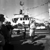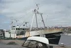 Småland, Kalmar län, Oskarshamn. Fiskebåtar från skärgården som (vilka) är inne och lämnar sin fångst.