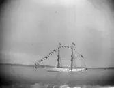 Enligt text som medföljde bilden: "Lysekil. Skeppsgossebriggen Falken från aktern stor parad 25/6 1899."