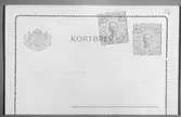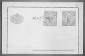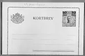 Efter teckningar av Karl-Erik Forsberg. Foton 17/8 1967. Kortbrev (3 st) med siffertyp av Forsberg. Överst 1951 års typ med tidigare komposition (stora riksvapnet) därunder frankotyp i mindre format och tre kronor, komposition Forsberg 1951 samt förenklad typ 1962 endast text och annan rivkant.