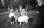 Drottning Victoria bilder. Kvinna med flickor och getter på ängen.