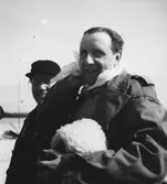 Däcket just före stapelavlöpningen, där trossarna till stoppankarna ligger upplagda, klara att löpa ut, när ankarna släppts för att stoppa upp fartyget. Hohensee, Müller, Gustafsson.