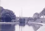 "Slussning på höjden, Trollhättan 27 maj 1901 i Nya slussarne."