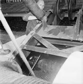 Båtens namn är Ella, lossning av koks från fraktbåt till koksficka.