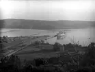 Vy över Bräcke med hamnområdet uppe till vänster.